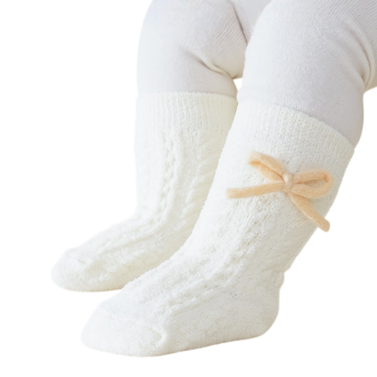 The White Bow Winter Baby Socks feature a delicate bow detail on a soft white base, crafted from warm, breathable fabric that is gentle on delicate baby skin. Designed for colder seasons, these socks keep little feet cozy while adding a clean, elegant touch to winter outfits.